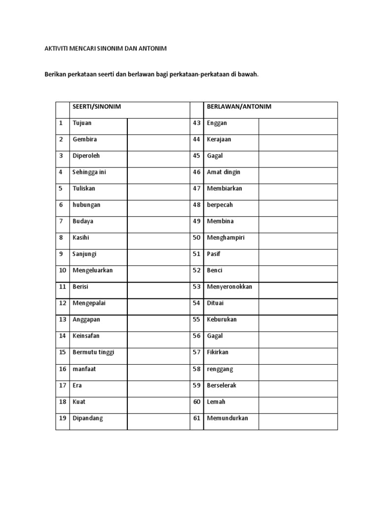 Aktiviti Mencari Sinonim Dan Antonim Pdf